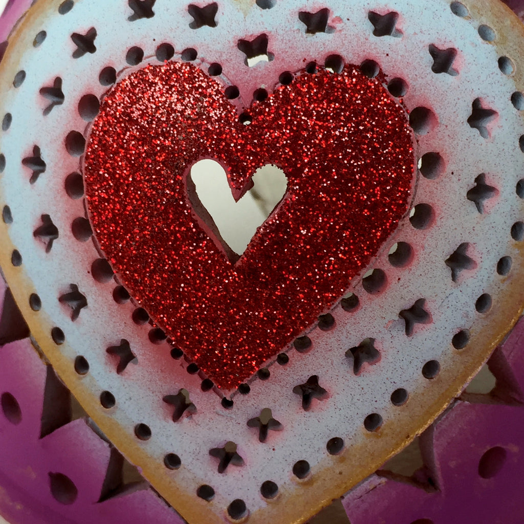 Half round night light red sparkle heart, surrounded with white, on hot pink
