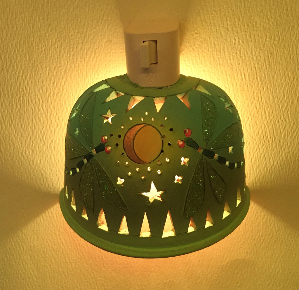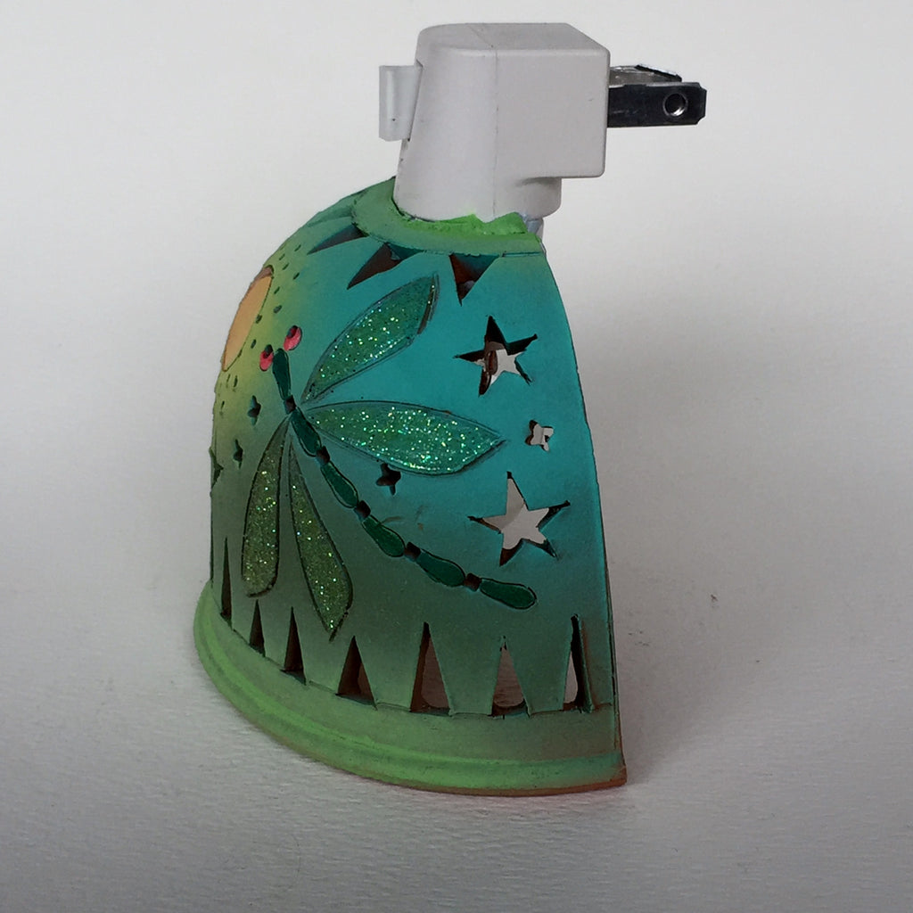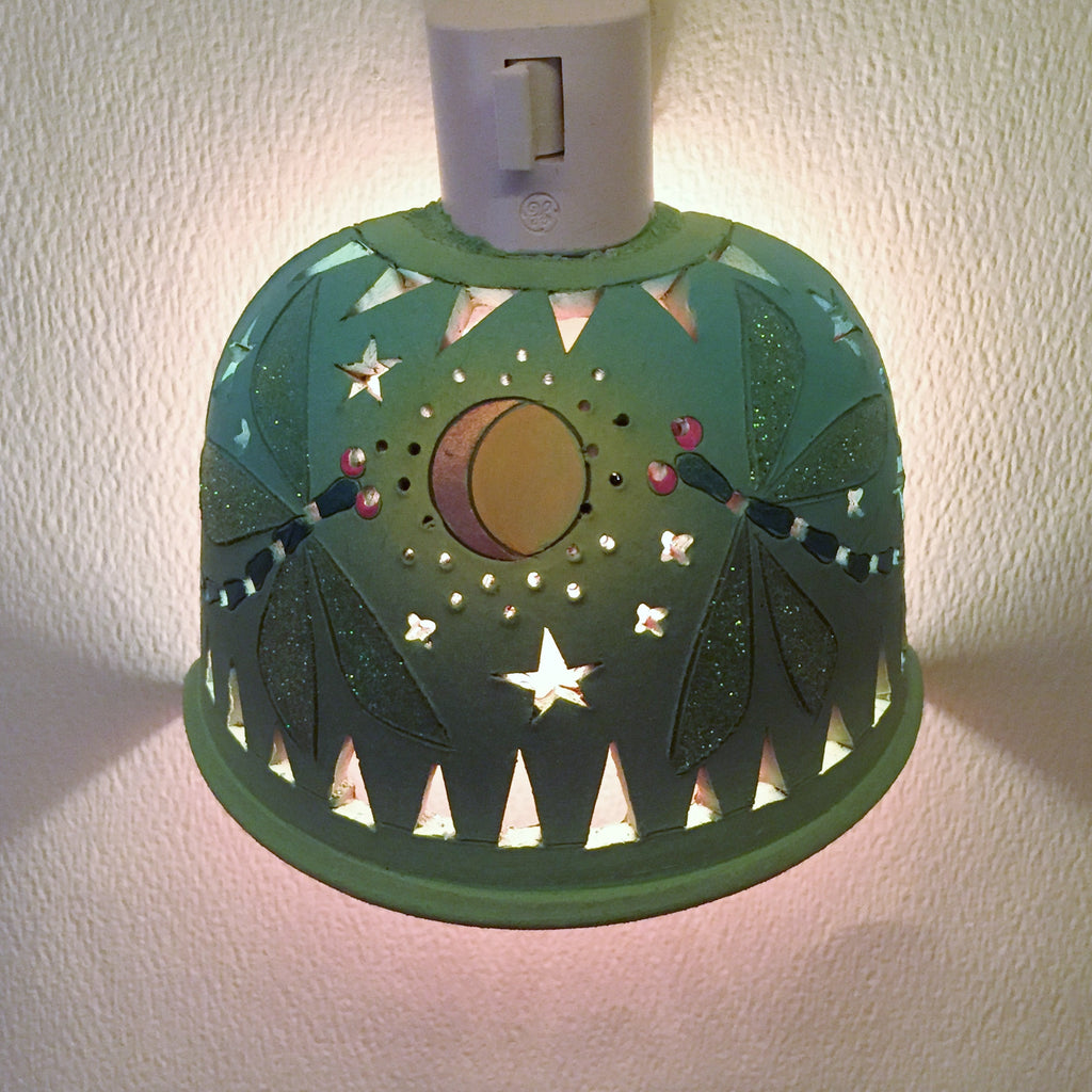 Shaded aqua to green, this night light has dragonflies with green, glittery wings. Who doesn't want some sparkle in their night?