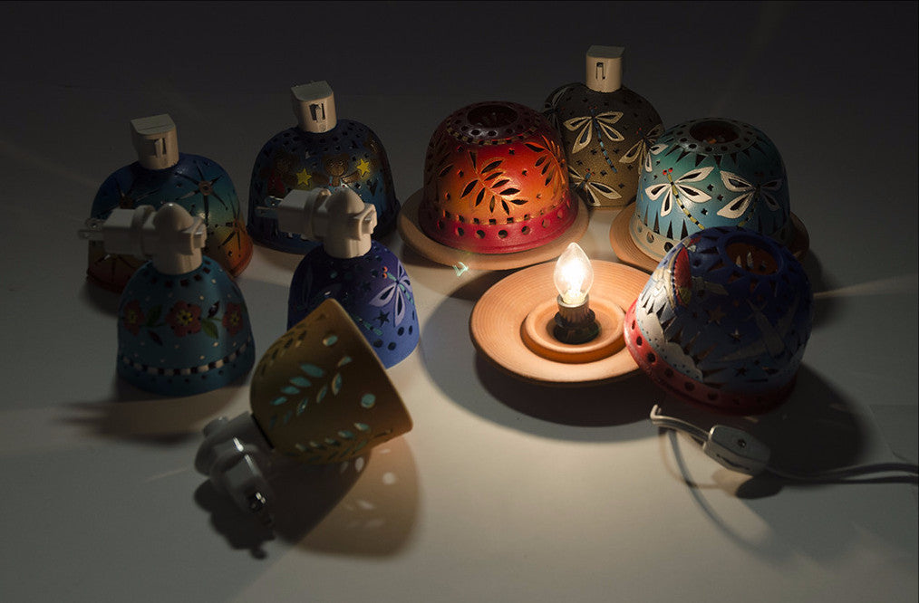 Electric Nightlights are made of clay. As with the luminaries, they are hand incised